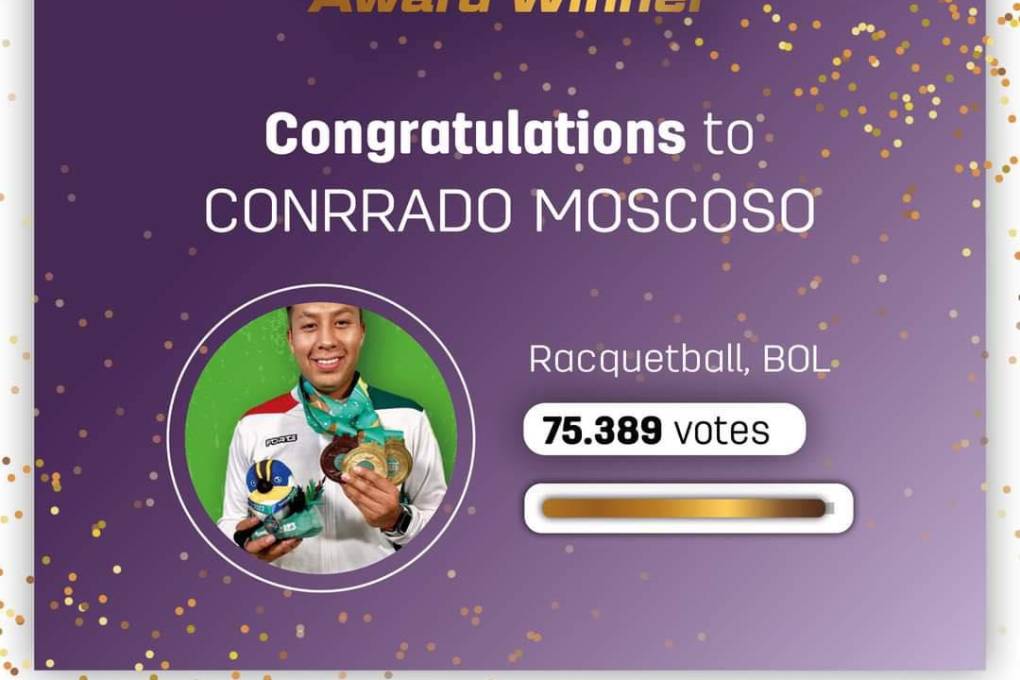 El boliviano Conrrado Moscoso fue elegido como el Atleta del Año 2023 de los World Games. Este deportista, nacido en Chuquisaca, es uno de los más destacados en la historia del ráquetbol en el país.