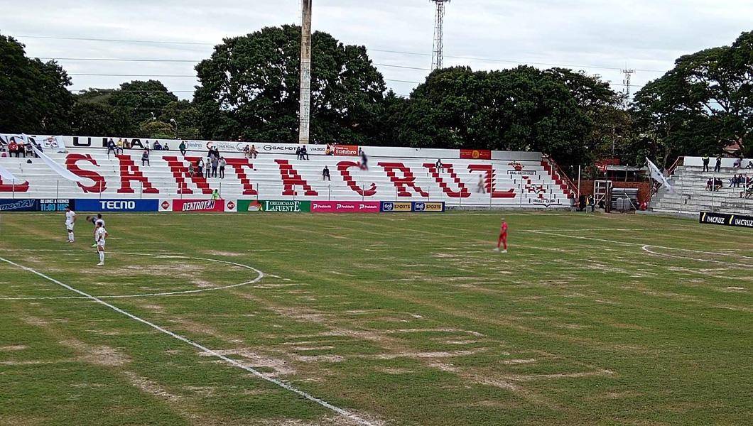 El mal estado de la cancha del estadio de Real Santa Cruz fue blanco de críticas