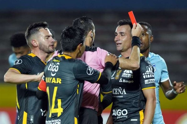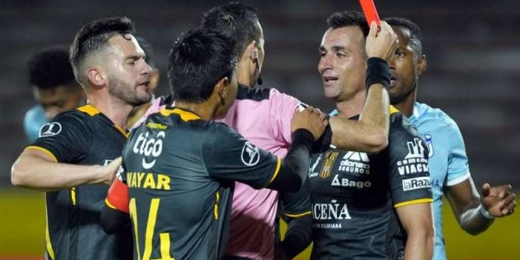 Los bolivianos debieron encarar el encuentro, disputado en el estadio Olímpico Atahualpa de Quito, con 10 jugadores, luego de la expulsión de Martín Prost en el minuto 35. El delantero golpeó con la planta del pie la mandíbula del arquero Darwin Cuero.