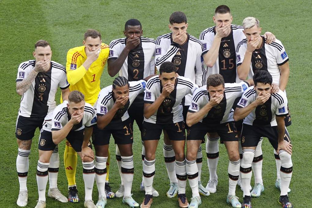 Los futbolistas alemanes se taparon ostensiblemente la boca con la mano a la hora de tomarse la foto de equipo antes de su debut en el Mundial-2022 contra Japón este lunes, una aparente protesta contra la amenaza de sanciones deportivas por parte de la FIFA para evitar que se utilice el brazalete ‘One Love’ en Qatar.