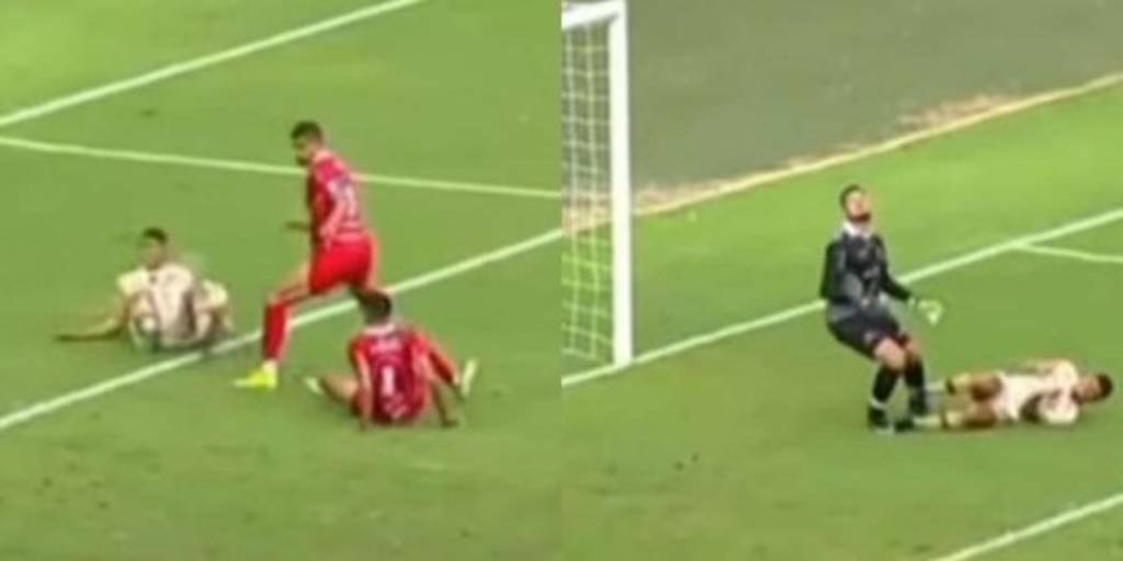 En el video se observa como el atacante intenta recibir un pase y queda atrapado entre dos jugadores rivales, cae al suelo y logra catapultar la pelota por encima del arquero. Un defensor intentó rechazar el gol, pero fue imposible. Finalmente fue el tanto que le dio la victoria a su equipo.