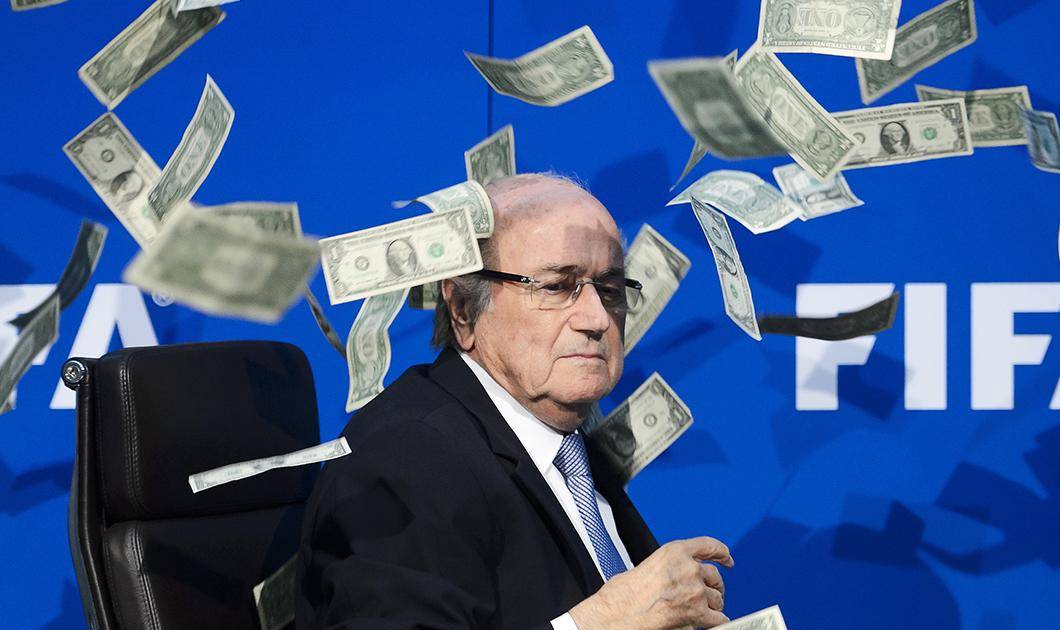 Blatter, en una recordada imagen en una conferencia de la FIFA