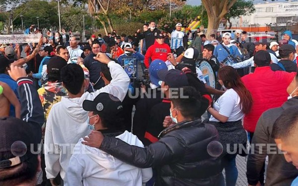 Los albiverdes y los celestes llegaron con bombos, platillos, además de banderas, y no se vieron impedidos de cantar y bailar, pese a las bajas temperaturas que se registran en la capital cruceña.