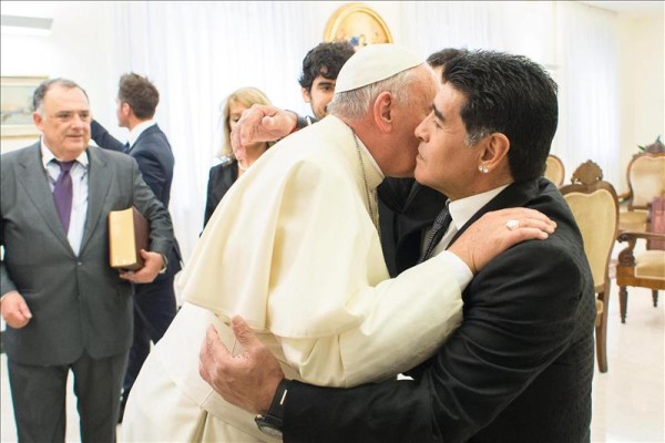 El "Pelusa" participó la semana pasada en Roma en un "Partido por la Paz" organizado por el Papa Francisco, al que regaló una camiseta de la selección argentina con su número 10 y el nombre del pontífice, y mantuvo con él un encuentro privado.