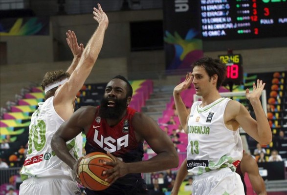 Eslovenia aguantó el tipo en la primera parte (42-49), a pesar de verse desbordada por la intensidad de los americanos. Los hermanos Dragic sustentaron a su equipo como pudieron con sus canastas, igual que la aportación de un Lorbek agotado por el marcaje de James Harden.