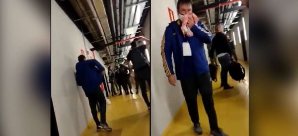 Según informó la asesoría de prensa del Atlético Mineiro, los jugadores de Boca Juniors, muy descontentos por la actuación arbitral, rompieron y lanzaron todo lo que encontraron a su paso en el túnel de vestuarios del Mineirao hasta llegar al que les correspondía cuando terminó el partido.
