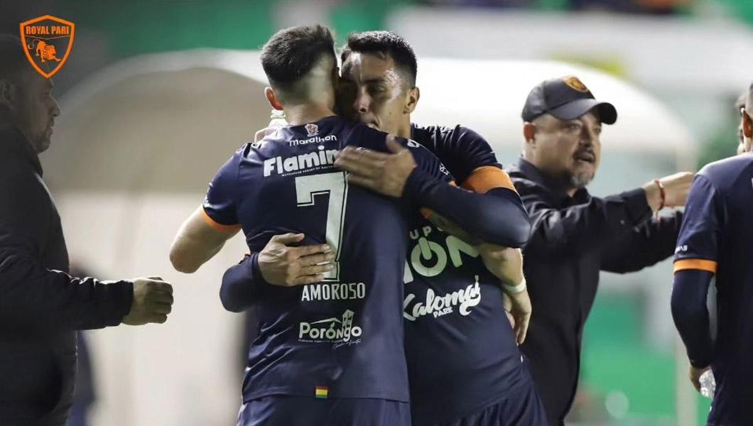 [Foto: RRSS] / Amoroso marcó un golazo para darle el triunfo parcial a Royal Pari en el compromiso ante Guabirá.