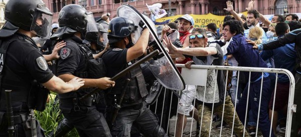 En varias calles del centro de Buenos Aires, cerca de la sede gubernamental, la policía reprimió con balas de goma y gases lacrimógenos a grupos de hinchas que arrojaban botellas y piedras.