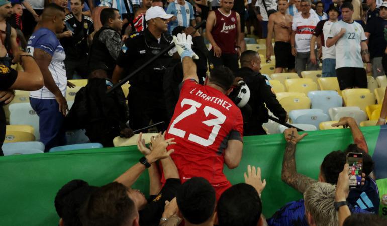 El clásico sudamericano entre Brasil y Argentina comenzó con casi media hora de atraso debido a que, ante una pelea generalizada en la tribuna en que estaban concentrados los hinchas argentinos y una fuerte represión policial, los jugadores de la Albiceleste intentaron calmar los ánimos y que tuvo a varios protagonistas, entre ellos el arquero albiceleste Emiliano Martínez, ‘El Dibu’.