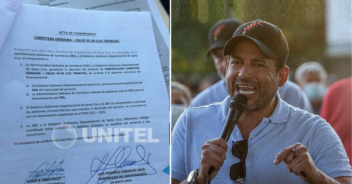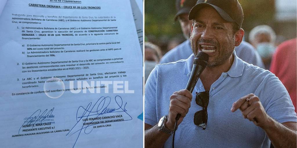 Desde su reclusión preventiva en el penal de Chonchocoro, el gobernador cruceño Luis Fernando Camacho firmó el convenio para la construcción del tramo carretero Los Troncos – Okinawa, en el que se acuerda que el Gobierno nacional financiará el 70% de la obras a través de un crédito externo y la Gobernación se encargará del 30% restante, según confirmaron desde la Secretaría departamental de Desarrollo Económico