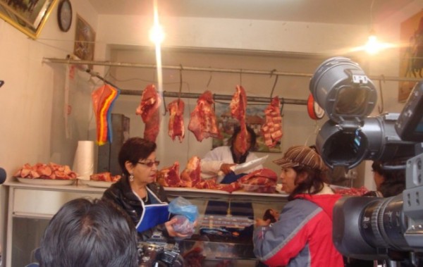 “La carne es de mala calidad y el precio está igual que en los frigoríficos a 21 bolivianos el kilo gancho de carne corriente y no es de buena calidad tiene mucho nervio. Además por aquí no han venido los de EMAPA”, dijo doña Juana, una de las vendedoras del mercado Miraflores. La situación se repite en la mayoría de los centros de abasto de la urbe paceña, donde las carniceras coincidieron en observar el costo y la calidad del producto ofertado por el gobierno. “Seguimos vendiendo en los mismos precios”, sostuvo doña Adela, carnicera del mercado Rodríguez de la zona de San Pedro, al explicar que el kilo de carne corriente se cotiza en 21 bolivianos, el lomo en 24 y los cortes especiales como el peceto, cuadril y lomo en 40 bolivianos. En el mercado Yungas, las vendedoras decidieron no comprar carne de EMAPA, porque afirmaron que tiene el mismo costo que los friales de El Alto. “Nosotros compramos la carne de los frigoríficos de El Alto y no de EMAPA. Ayer querían vendernos a 21 bolivianos el kilo gancho, además la carne del Beni es negra, tiene mucha grasa y es de mala calidad. Por eso compramos la carne cruceña, aunque cueste a 23 bolivianos el kilo gancho”, declaró otra de las vendedoras de carne al detalle. En tanto, la ministra de Desarrollo Productivo, Teresa Morales, denunció el “boicot” de algunos dirigentes y comerciantes carniceros, pues a pesar del convenio suscrito entre el gobierno y la Federación Departamental de Carniceros (Fedecar) se tiene algunos desajustes para abastecer de carne a los centros de abasto. “El interés (de estos comerciantes) es sacar más de 5 bolivianos por kilo que es lo que sacan y ganar más a costilla del pueblo. EMAPA continuará con la distribución de carne de res, de buena calidad procedente de Beni”, dijo la ministra. Desde el sábado pasado, EMAPA inició la venta de carne de res a los carniceros a 19 y 19 bolivianos con 50 centavos el kilo gancho, que implica una rebaja del precio en 2 bolivianos. EMAPA instaló puestos de venta de carne de res al detalle en Villa Fátima, Isaac Tamayo y Bartolina Sisa, en la ciudad de La Paz y Santa Rosa en El Alto.