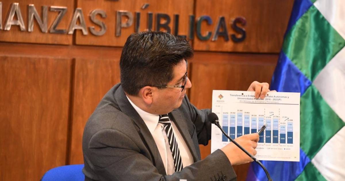 El ministro informó que el proyecto del PGE contempla un incremento de 3,8%, de Bs 235.000 millones del presupuesto consolidado a 2022 a Bs 244.000 millones.