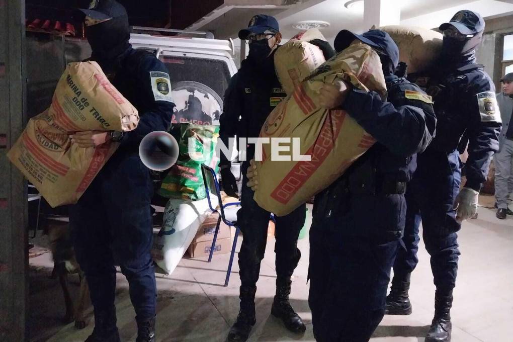 El intendente municipal, Enrique Navia, indicó que en el lugar se halló al menos tres toneladas de harina de contrabando, sin embargo, solo secuestraron 11 bolsas las cuales serán utilizadas como prueba, hasta que la propietaria presente el registro o documentación necesaria.