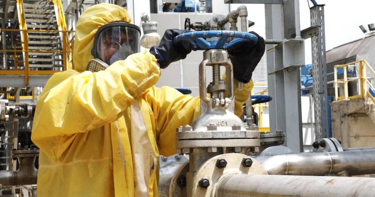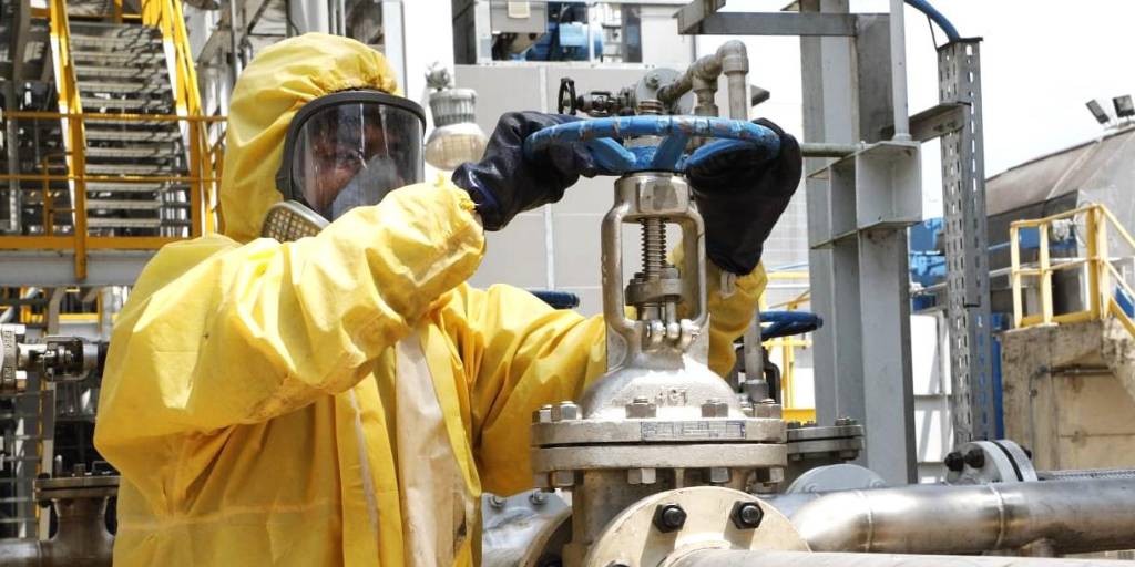 [YPFB] / Un operario de YPFB en una planta de gas.