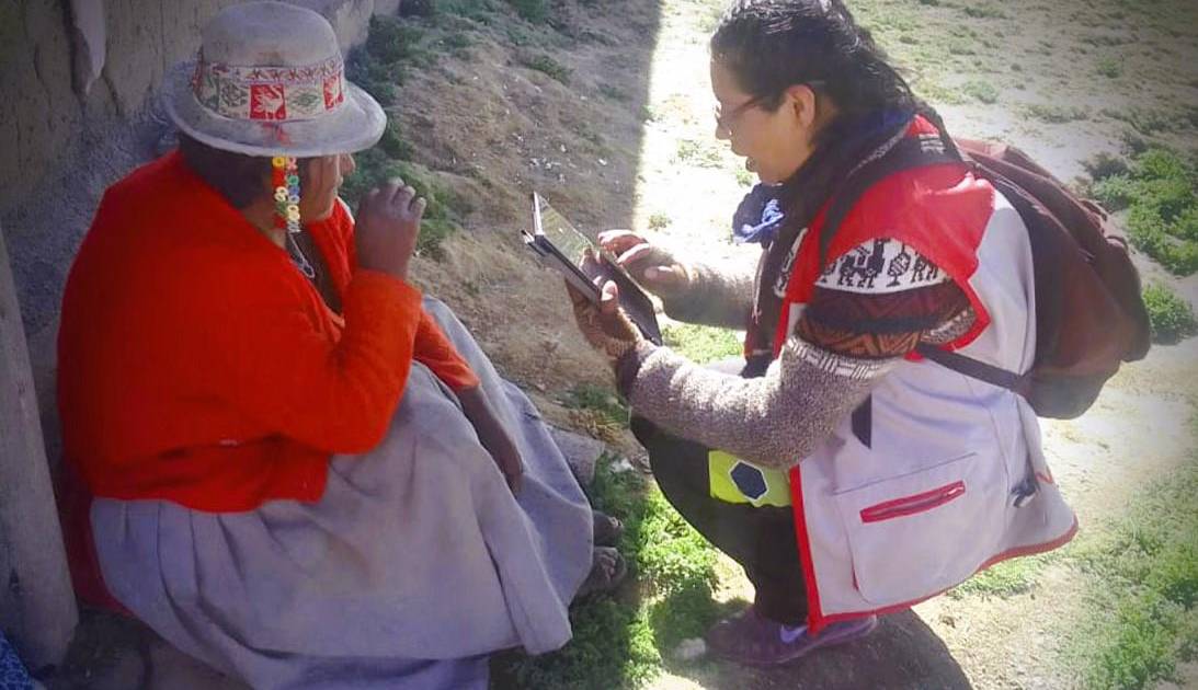 [INE] / Una funcionaria del INE conversa con una vecina de La Paz.