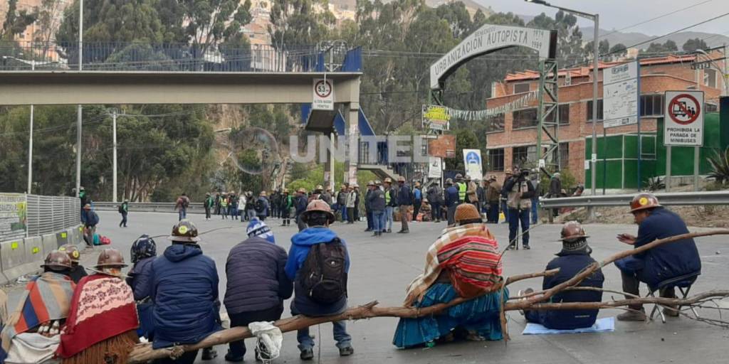[Guery Pozo - UNITEL] / Un grupo de mineros bloquea la vía rápida que une a La Paz con El Alto en el sector del Plan Autopista.