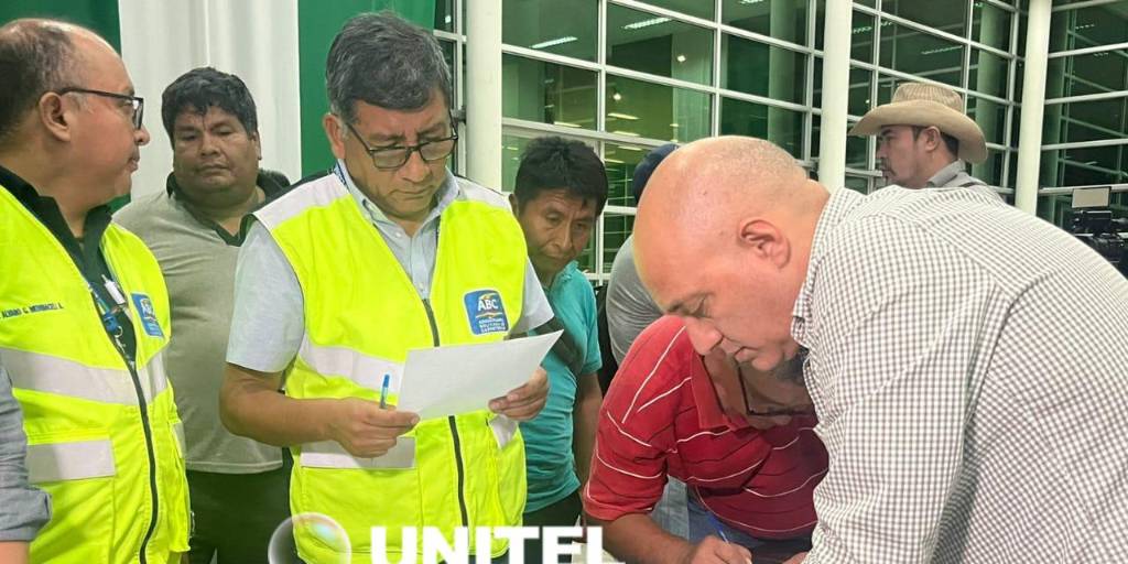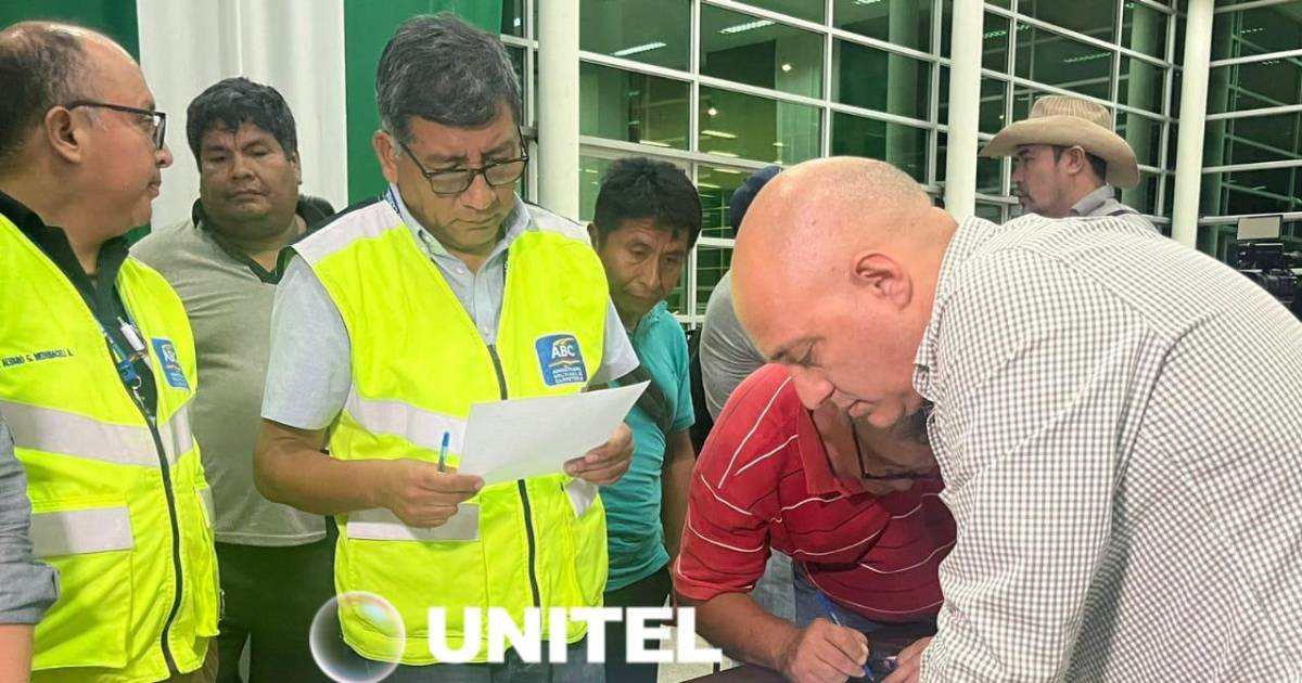 [UNITEL] / Autoridades de la ABC y la Gobernación cruceña firmaron un acta para comprometerse a retomar las labores este jueves.