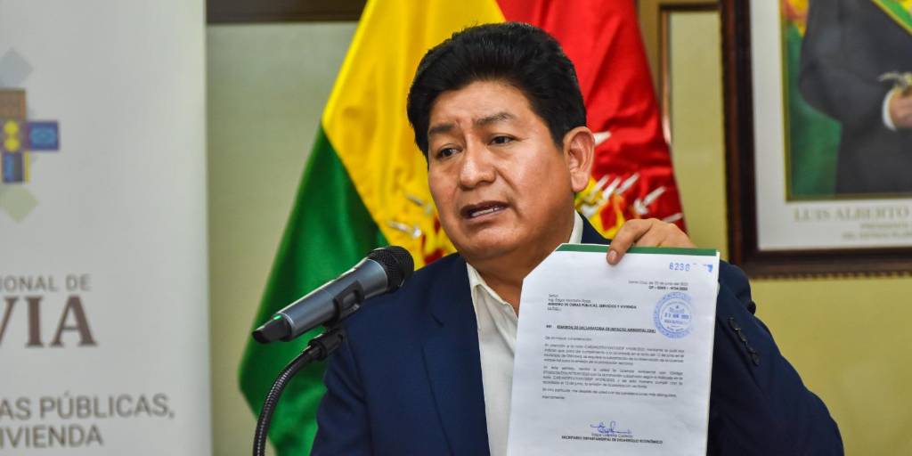 El ministro de Obras Públicas señaló que la documentación debe tener firma del gobernador cruceño para dar continuidad al proceso para construcción de carreteras.
