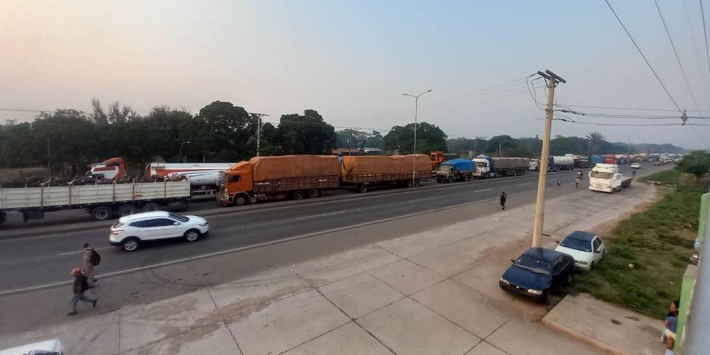 Mientras se cumple la medida de presión, filas extensas de vehículos se han formado en ambas vías de esta carretera que además, es fundamental para el tránsito de personas y productos alimenticios, además de ganado que se transporta desde Santa Cruz hacia la Chiquitania y Trinidad, y viceversa.