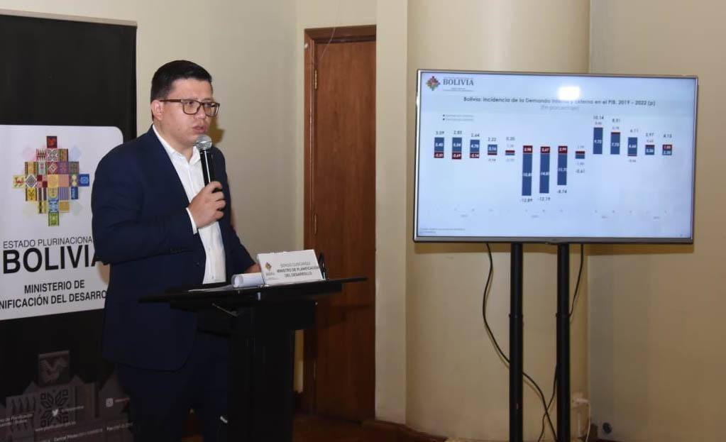 “El dato del 4.13% no permite alcanzar el parámetro establecido en el Decreto Supremo, sin embargo es importante mencionar a la población que la economía boliviana continúa creciendo”, indicó el ministro de Planificación del Desarrollo, Sergio Cusicanqui.