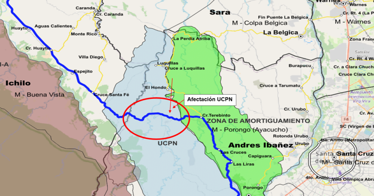 El mismo documento explica que recibieron información de la Dirección de Conservación del Patrimonio Natural (Dicopan) de la Gobernación cruceña sobre los estudios hidrológicos realizados en el tramo 2 del proyecto Santa Cruz – Las Cruces – Buena Vista.