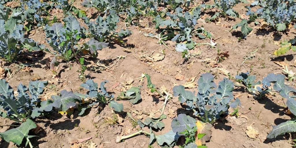 Cultivos de producción de brócoli, coliflor, repollo y cebollas se van secando a consecuencia de la crisis hídrica que azota al sector.