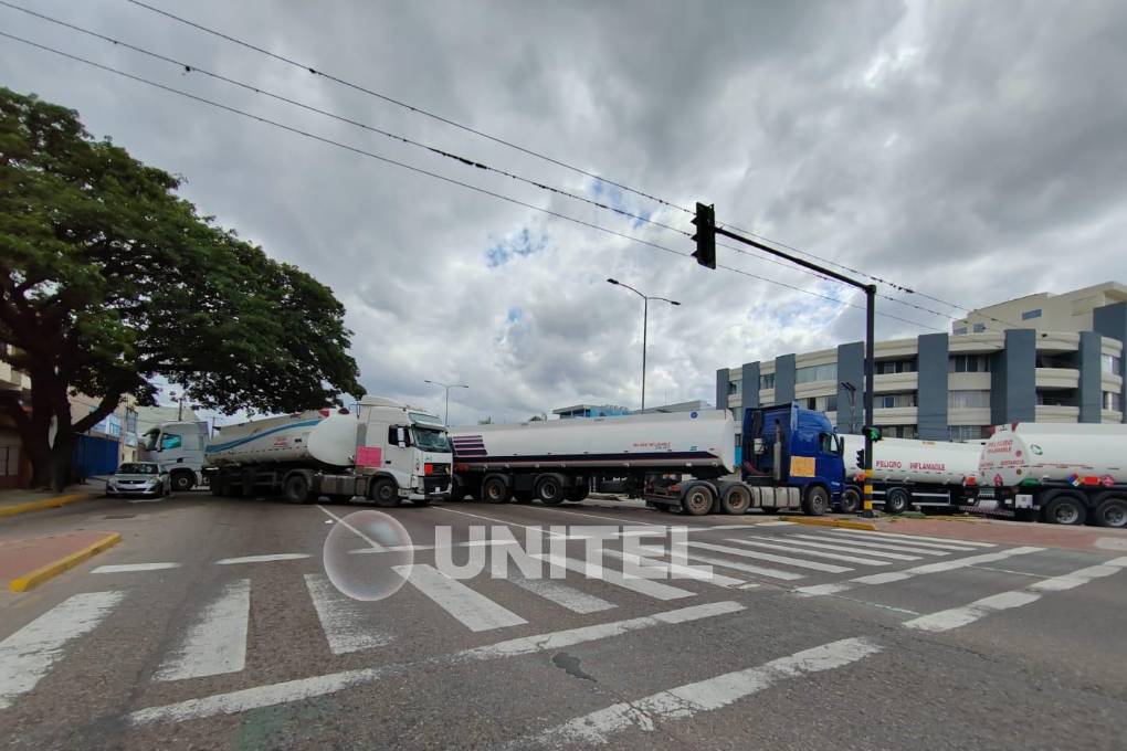 Los miembros de la Asociación de Propietarios de Camiones Cisternas instalaron un bloqueo derco del mediodía de este martes en puertas del edificio de Yacimientos Petrolíferos Fiscales Bolivianos (YPFB), ubicado entre el tercer y cuarto anillo de la doble vía a La Guardia, en la capital cruceña, en demanda de pagos que tienen cuatro meses de retraso.