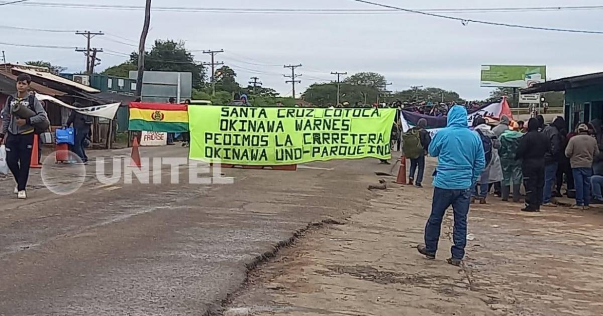 Santa Cruz: Reactivan bloqueos en Cotoca y Okinawa exigiendo la priorización del tramo al Parque Industrial