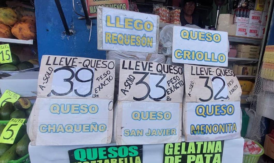 En mercados de La Paz y El Alto el precio del kilo de queso subió considerablemente. Bs 39 cuesta el queso chaqueño, Bs 33 el queso san javier y Bs 32 el queso menonita.