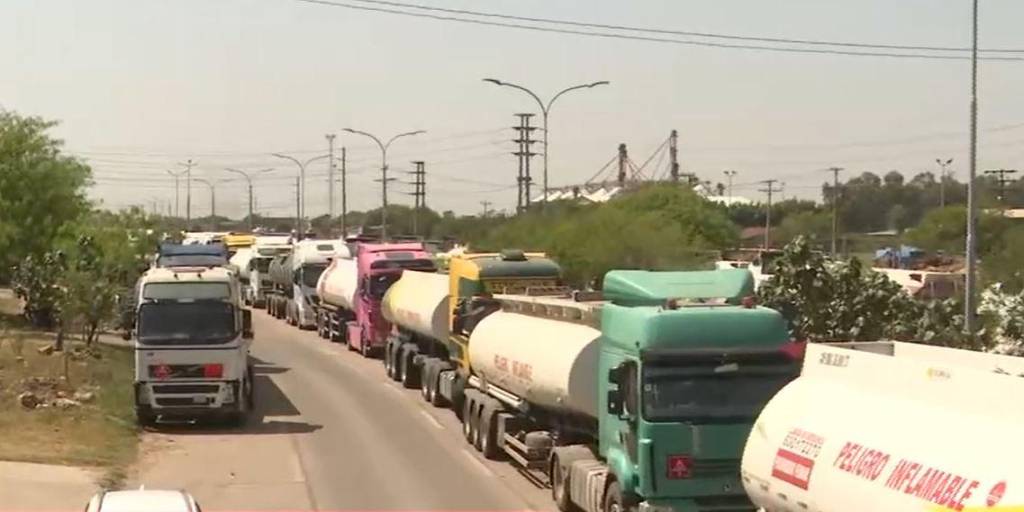 Choferes de cisternas con combustible, que llega desde Argentina y Paraguay, se encuentran varados varios días en el ingreso a la refinería de Palmasola en Santa Cruz. Las filas de los vehículos pesados se extienden por alrededor de dos kilómetros.