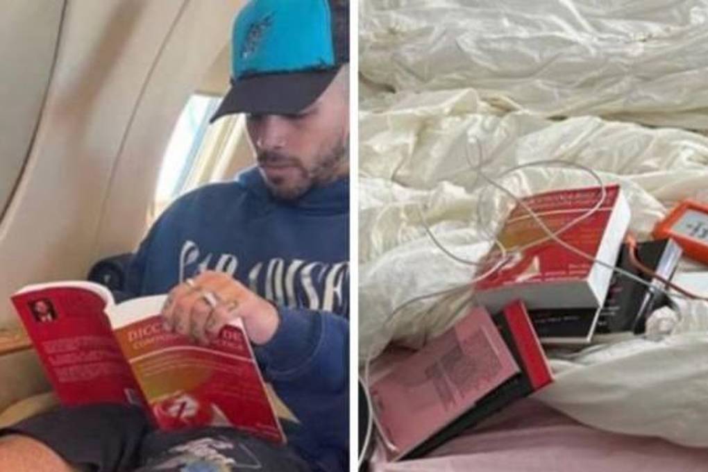 En uno de sus publicaciones recientes, Rosalía muestra una foto donde se ve una cama y un llamativo libro de tapa roja, coincidentemente una obra con las mismas características fue vista en manos del puertorriqueño.