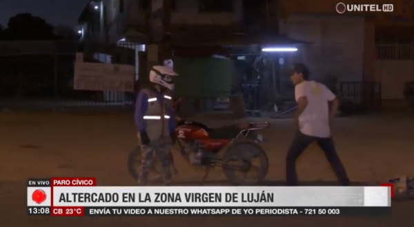 Se registró un altercado en el 4to anillo de la Virgen de Luján, una pelea entre un vigilante y un motociclista al cual no daban paso.