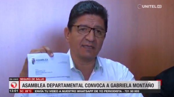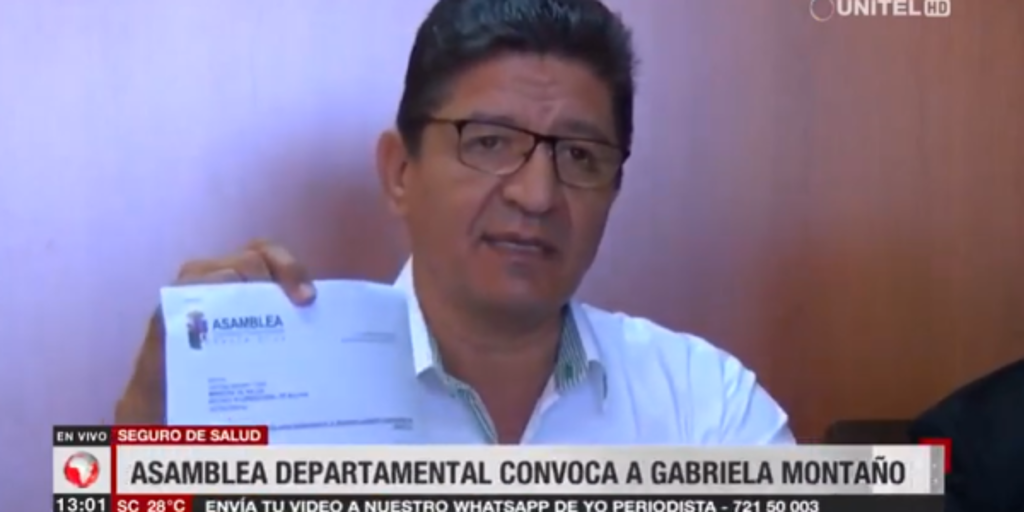 La Asamblea Departamental convocó a la ministra de salud, Gabriela Montaño, para que pueda explicar el proyecto del Seguro Universal de Salud. Recibieron críticas por parte de seguidores del MAS, que exigen la firma de Rubén Costas para la implementación rápida.