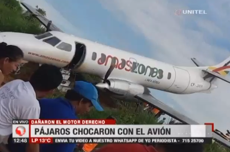 La empresa aérea Amaszonas informó que una bandada de aves perjudicó el despegue de una aeronave que realizaría la ruta Riberalta – Trinidad, en Beni. 12 pasajeros y dos tripulantes iban en el nave.