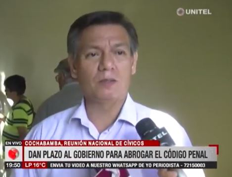 Luego de reunirse en Cochabamba, siete de diez comités cívicos decidieron dar un plazo al gobierno de Evo Morales para abrogar el Sistema Penal. El plazo culminará el lunes 22 cuando Morales de su informe de gestión.