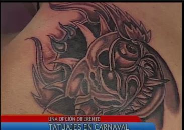 Cochabamba.- El dueño de Taoomanía estuvo en La Revista donde mostró su arte con la realización de un tatuaje de la máscara del diablo propia del carnaval de Oruro.