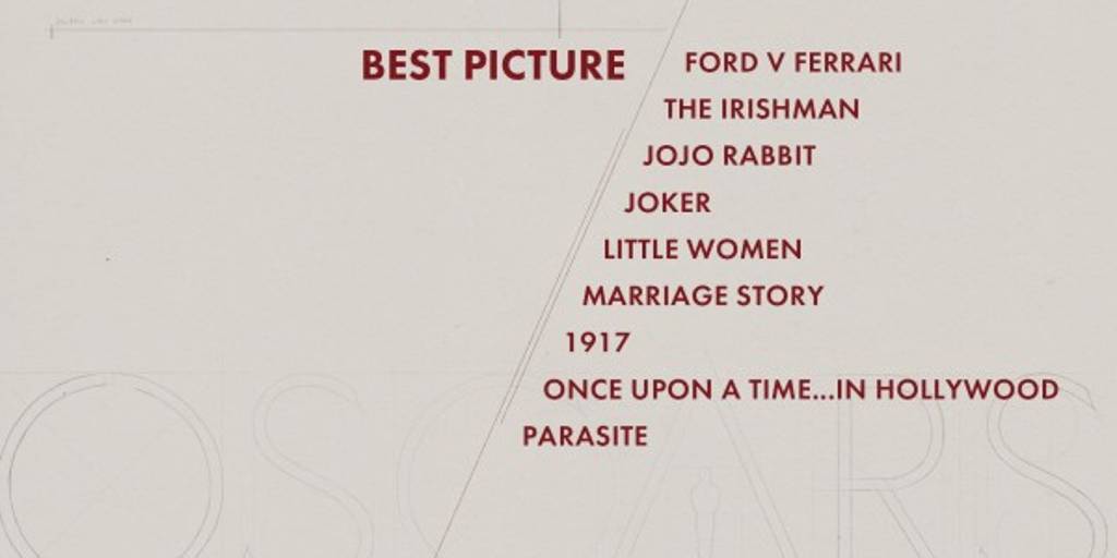 Este lunes se conoció la lista de nominados a los premios Óscar 2020. La ceremonia de premiación se realizará el próximo 9 de febrero en el Dolby Theater de Los Angeles.