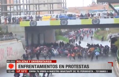 Estudiantes y docentes de la Universidad Pública de El Alto salieron a las calles a marchar rumbo a la ciudad de La Paz exigiendo un mayor incremento de presupuesto. La Policía evitó la manifestación y gasificó a los protestantes.