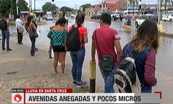Intensa lluvia provocó escasez del transporte e inundaciones en Santa Cruz