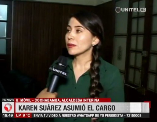 Con 9 votos, Karen Suárez fue elegida como alcaldesa interina. Suárez aseguró que trabajará por Cochabamba como lo hacía Leyes, y espera que pronto vuelva al sillón edial.