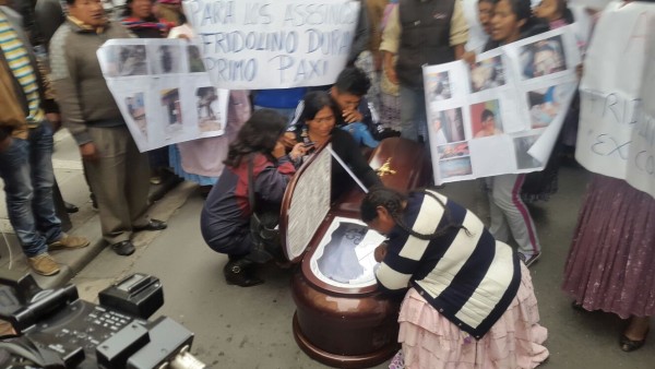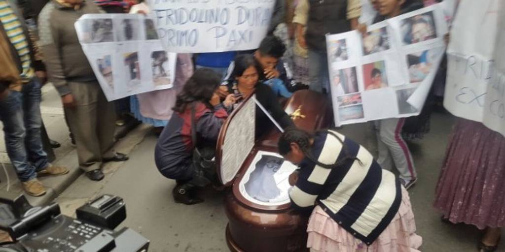 Los familiares y comunarios llegaron con el ataúd a protestar en busca de justicia para que el crimen no quede impune.