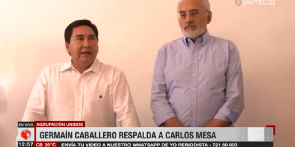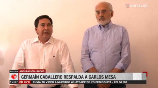 Carlos Mesa recibió el respaldo, para las elecciones generales del 20 de octubre, por parte de la agrupación Unidos, de Germaín Caballero.