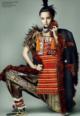 Bajo el lema "Geisha, samurái, manga", tres de los aspectos clave de la cultura japonesa, el que fuera el fotógrafo predilecto de Diana de Gales y la familia real británica, ha inmortalizado a la exmodelo de Victoria's Secret para la edición japonesa de Vogue, una de las revistas de moda más influyentes del mundo.