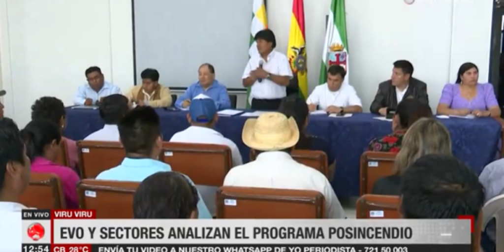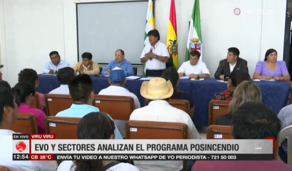 El presidente Evo Morales y diferente sectores analizan el programa posincendio en la Chiquitania. La reunión se mantiene en el espacio presidencial en Viru Viru.