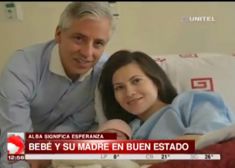 Al promediar las 7:00 de este lunes, nació la hija del vicepresidente Álvaro García Linera y Claudia Fernández, se llama Alba.