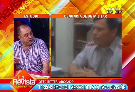 Santa Cruz, 23 de abril de 2015.- El abogado Otto Ritter estuvo en La Revista donde señaló como ciertas las denuncias del Cnel Germán Cardona a cerca del uso de armamento en custodia en la Octava División, como pruebas en el Caso Terrorismo.