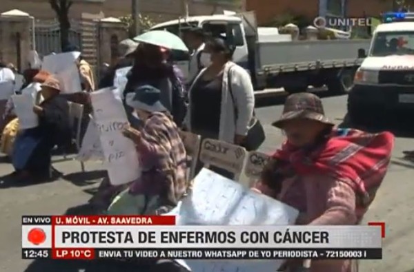 Las personas que padecen de la enfermedad del cáncer salieron a las calles y bloquearon la avenida Saavedra en La Paz por la falta de atención y medicamentos.