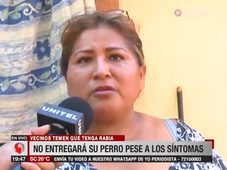 La propietaria del perro que supuestamente tendría mal de rabia asegura que su mascota no tiene rabia y mostraron las vacunas. Aseguran que hace un par de días cambió su carácter y que no deja de llorar. No quieren entregar a la mascota.