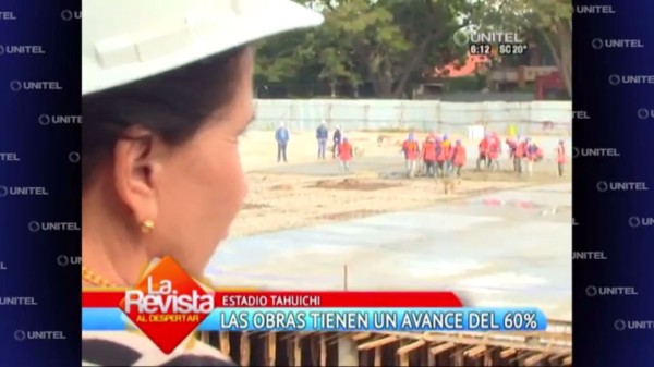 Santa Cruz, 7 de abril de 2015.- La gobernadora cruceña. Ruth Lozada, inspeccionó las obras de refacción en el estadio Ramón 'Tahuichi' Aguilera.