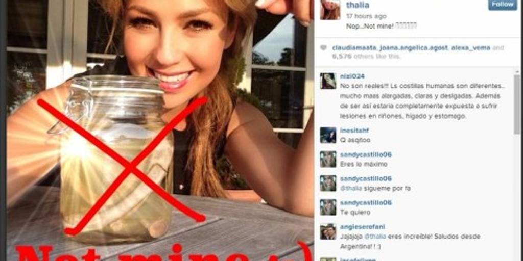 Thalía publica una foto de unas costillas en un tarro de cristal en broma sobre su reducción de cintura